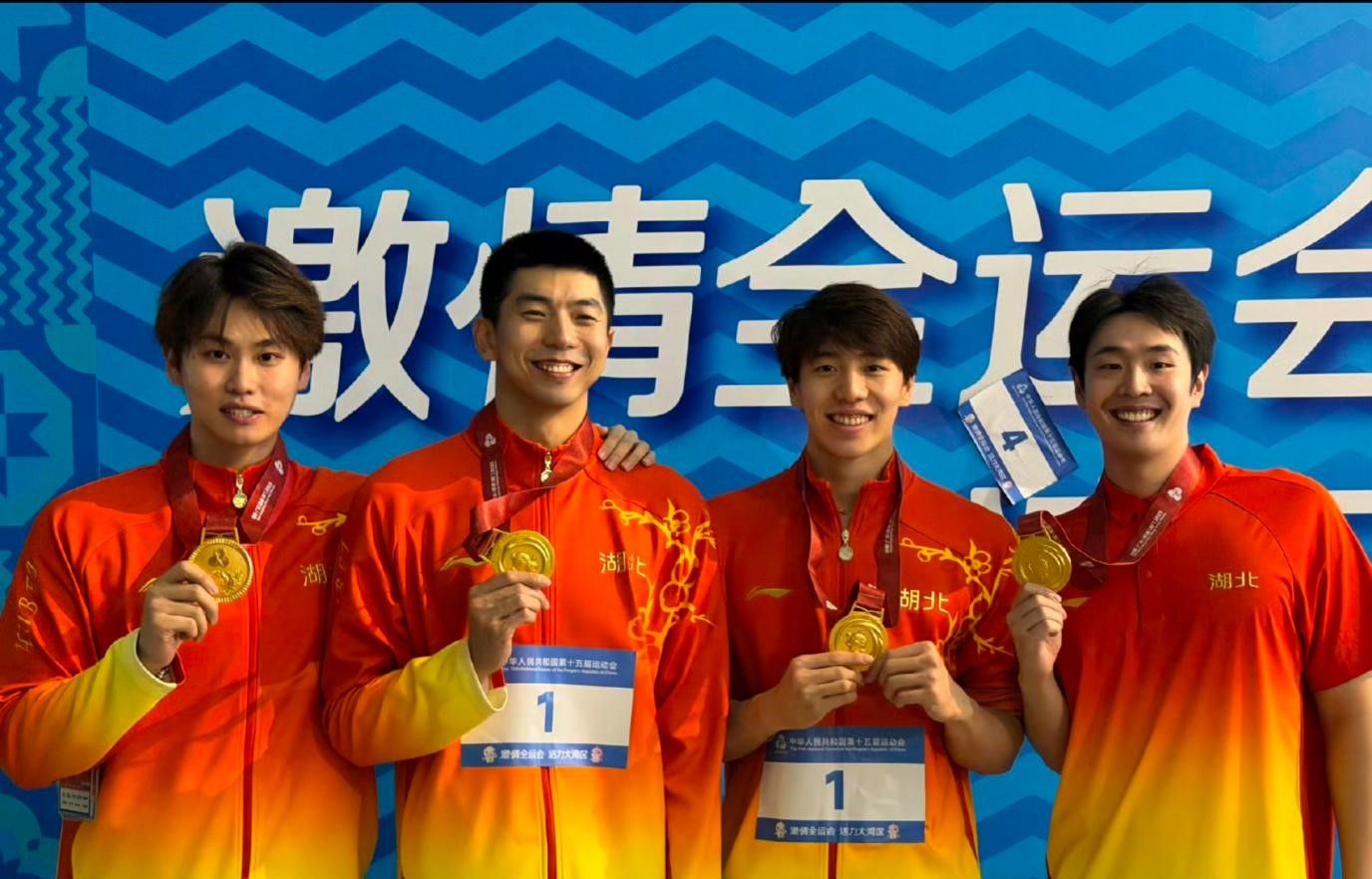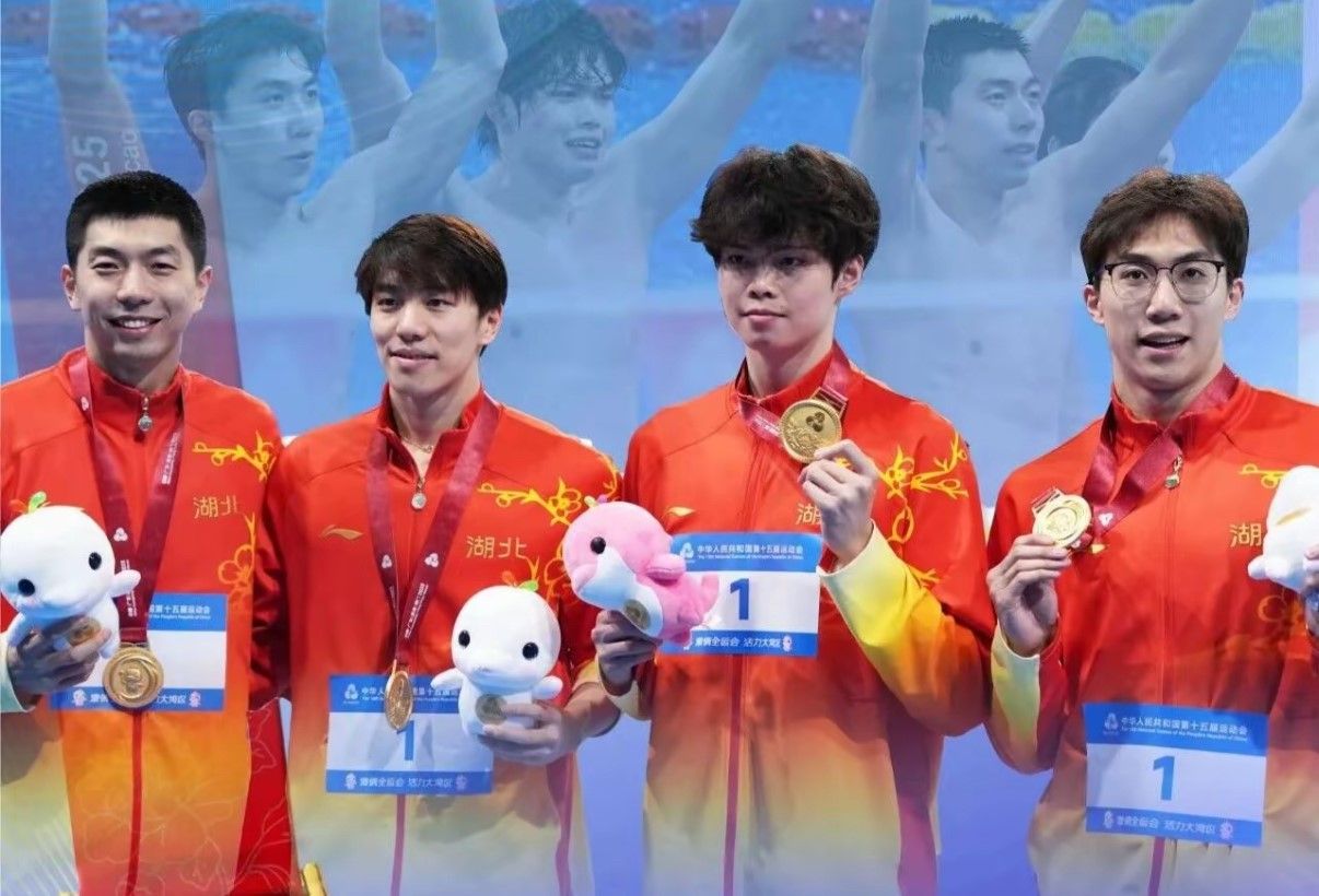 游泳赛场中,浪花翻涌间上演着速度与力量的较量。来自beat365在线唯一官网2023级研究生孙佳俊代表湖北队在 50 米蛙泳项目和男女 4×100 米混合泳接力项目中,从预赛到复赛再到决赛,他顶住巨大的竞技压力,凭借着扎实的技术功底和关键时刻的稳定发挥,帮助湖北队取得两枚铜牌。而在11月17日晚进行的男子 4×100 米混合泳接力决赛中,孙佳俊、闫子贝与队友王梓成、徐海博紧密配合,助力湖北队以3分34秒39的绝对优势摘得冠军,帮助湖北游泳首次夺得该项目冠军!