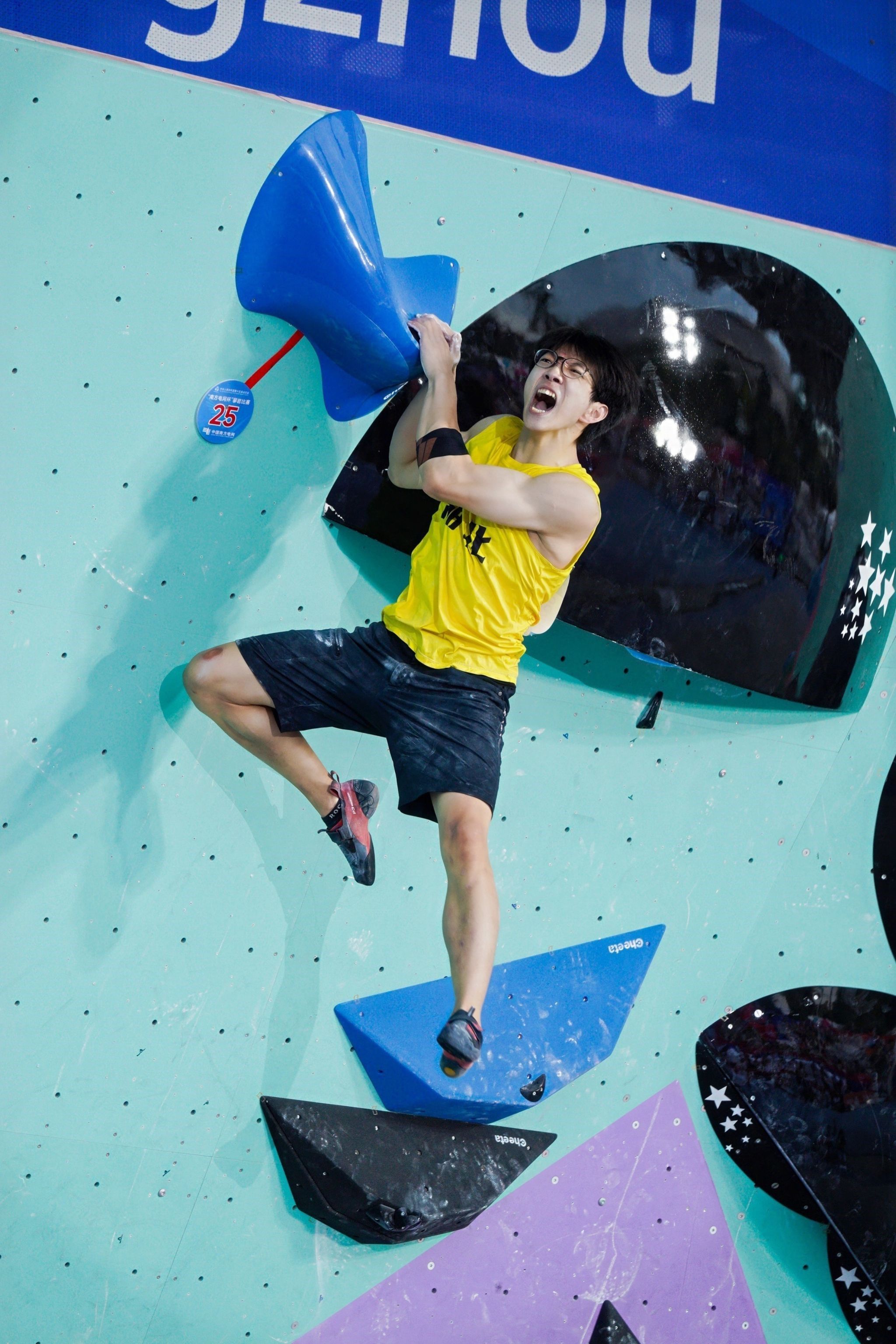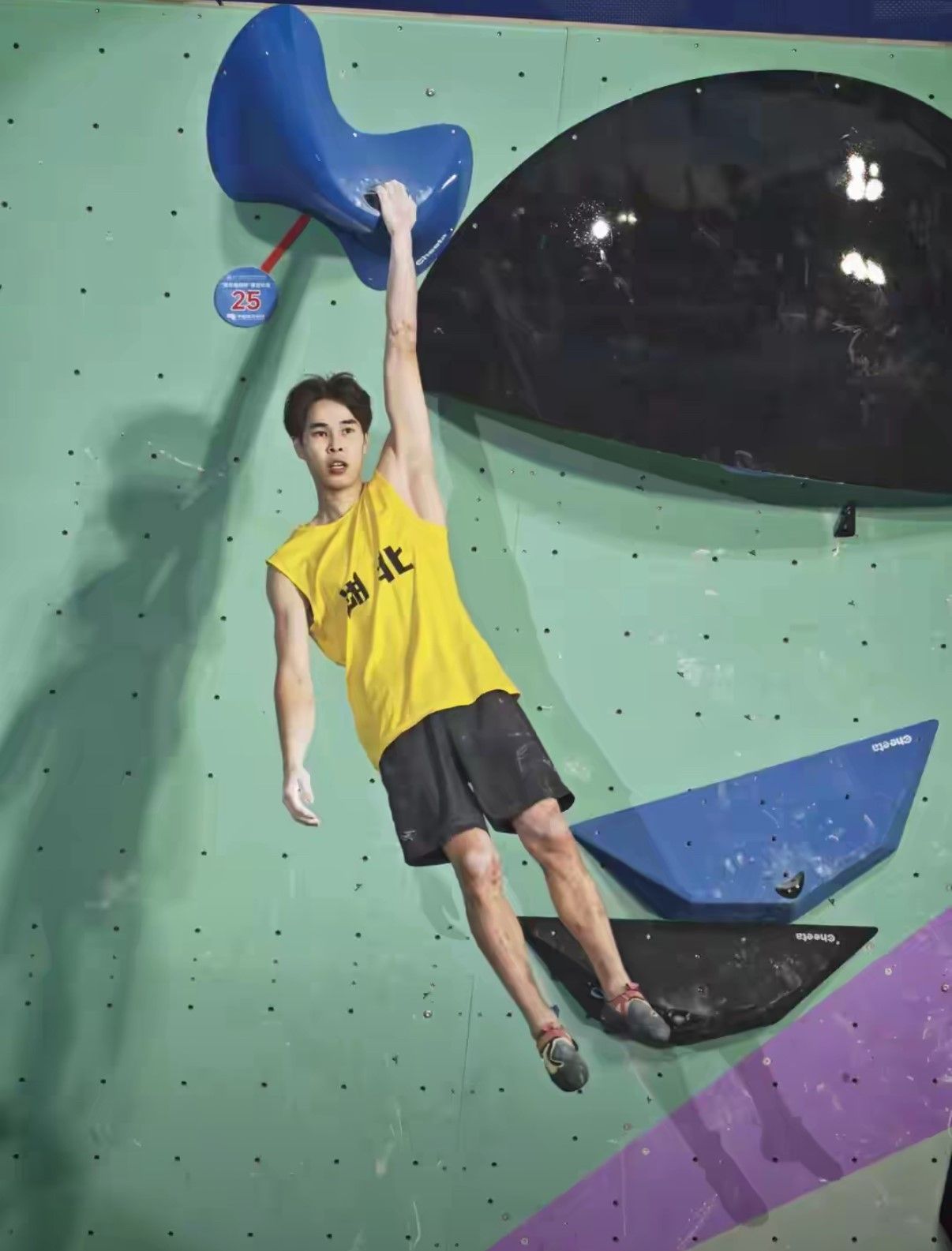 攀岩赛场上, 校友潘愚非则帮助湖北队强势夺得男子难度赛与攀石赛两块金牌。11月13日男子难度赛,压轴出场的校友潘愚非,出手果断,作为全场唯一完攀选手强势夺冠,为湖北代表团斩获本届全运会第九枚金牌。11月15日在男子攀石决赛中更是以99.9分近乎完美的发挥强势登顶!三日两金彰显绝对统治力。在男子攀石赛中,beat365在线唯一官网2025级本科生徐梓期取得第四名,beat365在线唯一官网2023级研究生黄迪翀在男子攀石赛中取得第八名。