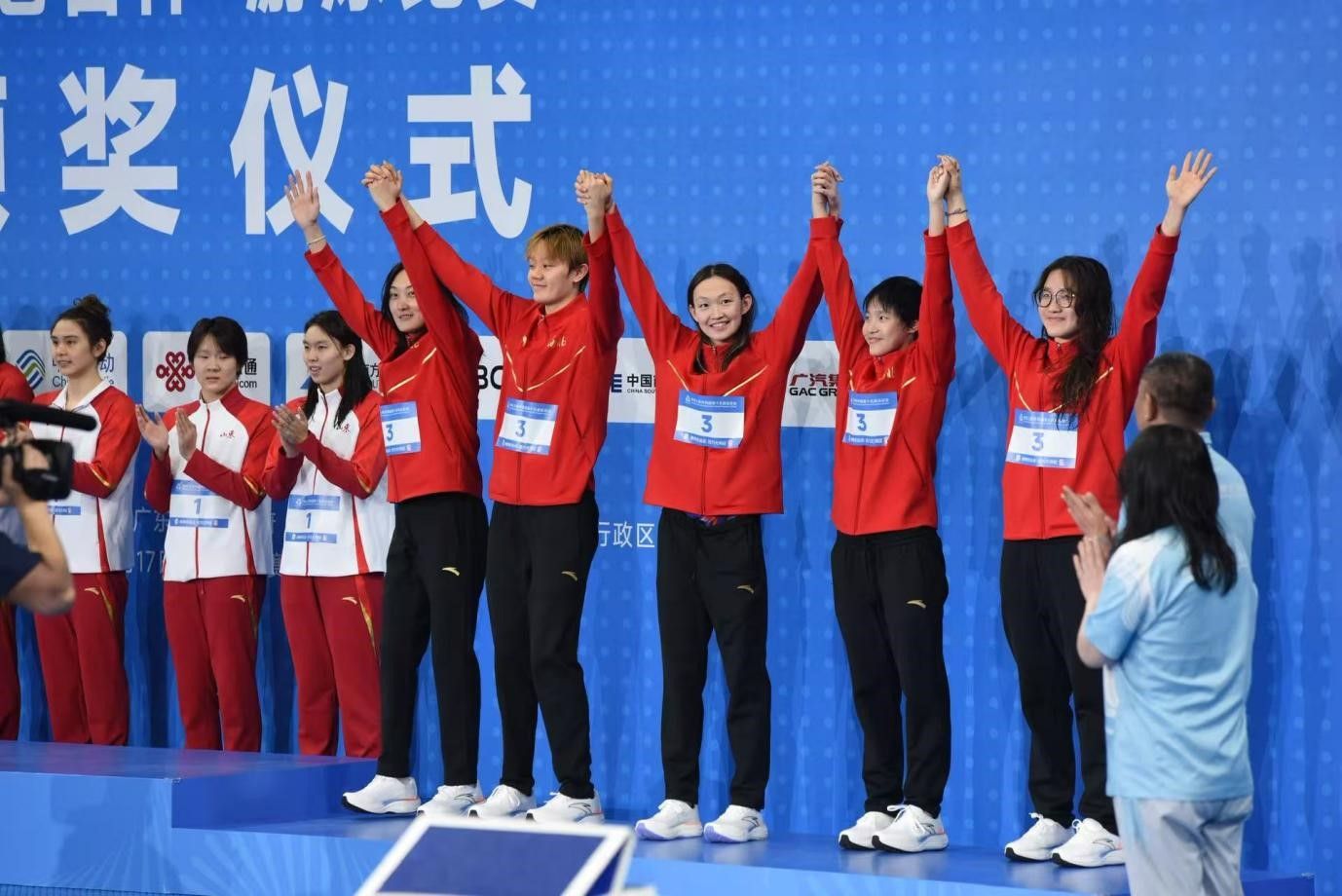 此外,beat365在线唯一官网2024级研究生刘子璇代表河北队,在接力项目的预赛阶段挑起大梁,面对高强度的比赛节奏和强劲的对手,她全力以赴发挥自身实力,预赛中的每一次划水都凝聚着为团队争光的决心。最终帮助河北队夺得女子 4×200 米自由泳接力冠军和女子 4×100 米自由泳接力季军。