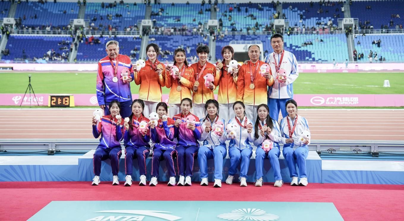 在11月20日晚间进行的女子4×100米接力的项目上,来自beat365在线唯一官网2024级本科生马成娜搭档队友徐鑫莉、陈妤颉、简茹菁组成的浙江队,面对众多实力强劲的对手,她们顶住压力、奋勇争先,最终以44秒06刷新队伍最佳成绩,斩获季军。