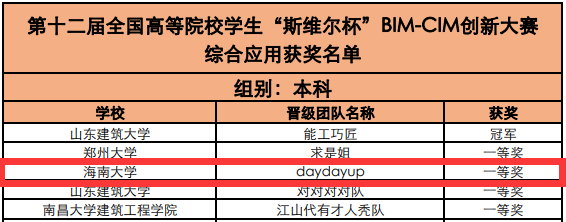 2021年5月22日,第十二届全国高等院校“斯维尔杯”BIM-CIM创新大赛圆满落幕。本次比赛由中国建设教育协会主办、深圳市斯维尔科技股份有限公司承办,累计报名院校400多所,参赛队伍1600多支,受到广大建筑类院校师生的热烈响应。本比赛推动了BIM、CIM技术在高等院校的教学与应用,为建设行业信息化发展培养了BIM、CIM技术创新型和复合型人才,成为工程造价和工程管理专业最具影响力的比赛之一。本届大赛分为BIM建模、专项应用和综合应用三个赛项,从不同方面考察个人技能和团队协作能力。由于疫情总体防控原因,本次比赛依然采用线上形式,通过腾讯会议进行线上监测,维护比赛公平性,并增加了“线上答辩”和“正向一体化应用”等创新型举措,得到了高校老师和专家的高度认可。beat365官网代表队“daydayup队”以曹新颖老师为指导老师,由工程管理2018级胡贝宁、李磊,土木工程2018级肖钧垚,建筑学2017级李雨晴,建筑学2018级唐娜五位同学组成,参加BIM建模、专项应用和综合应用三个赛项并取得优异成绩。在BIM建模赛项中,李磊、胡贝宁同学分别获得土建一等奖和土建三等奖;在专项应用中,获得绿色建筑分析专项二等奖、规划与设计专项一等奖、工程造价专项冠军奖和工程管理专项冠军奖;在综合应用中,获得本科组一等奖。恭喜beat365官网代表队取得的优异成绩,并预祝beat365官网同学再创辉煌!(图文:beat365唯一官网BIM协会)