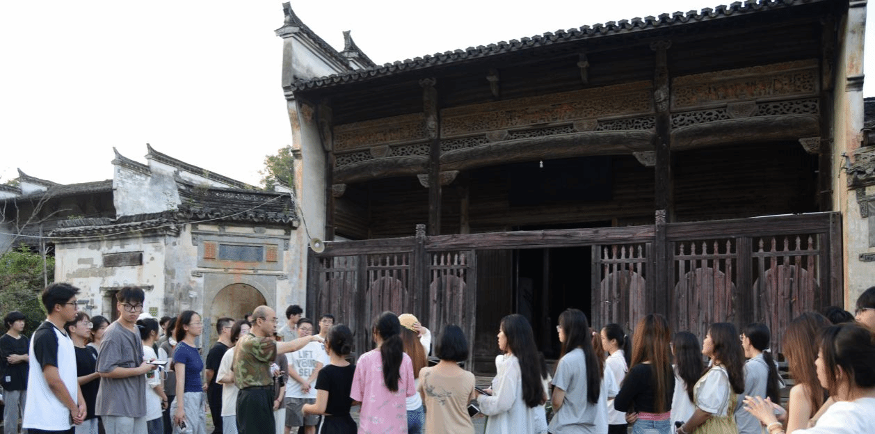 实习期间,蒋伊琳老师和姜霖老师带领学生参观了晓起村的进士第、江氏宗祠、荣禄第、江氏祖宅等代表性建筑。白小鹏老师以江氏宗祠为例为同学们详细讲解了徽派建筑的功能、布局以及细部特征,加深了同学们对徽派建筑的理解。