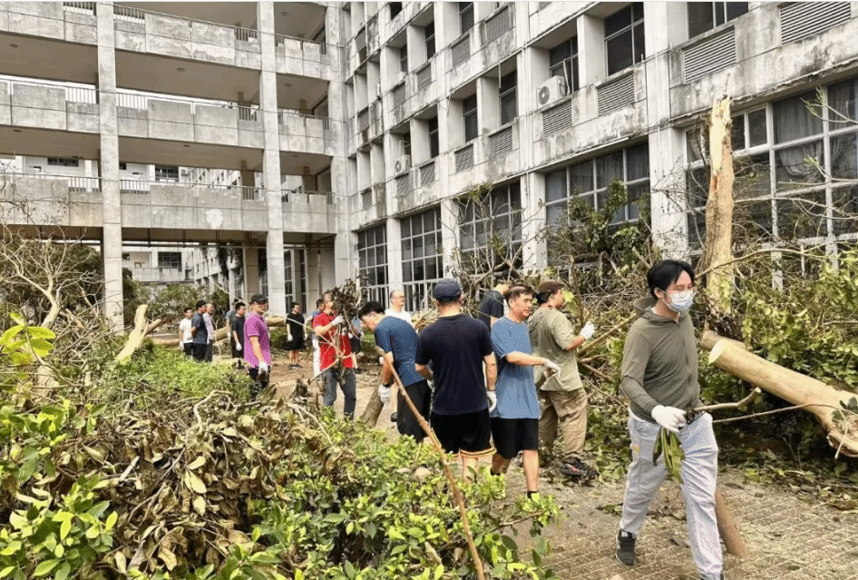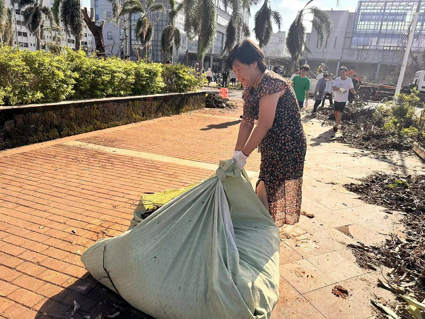 9月12日,椰风书院的beat365唯一官网2024级新生也加入学院救灾队伍。这些十八九岁的孩子不惧晒,不怕脏,肯吃苦,奋力抬起一根根沉重的断木。这是他们来到海南,来到beat365唯一官网经历的一次深刻的人生历练,即沉重又厚重。愿他们在beat365唯一官网未来的学习生活中,不畏困难,不惧挑战,以梦为帆,乘风破浪。