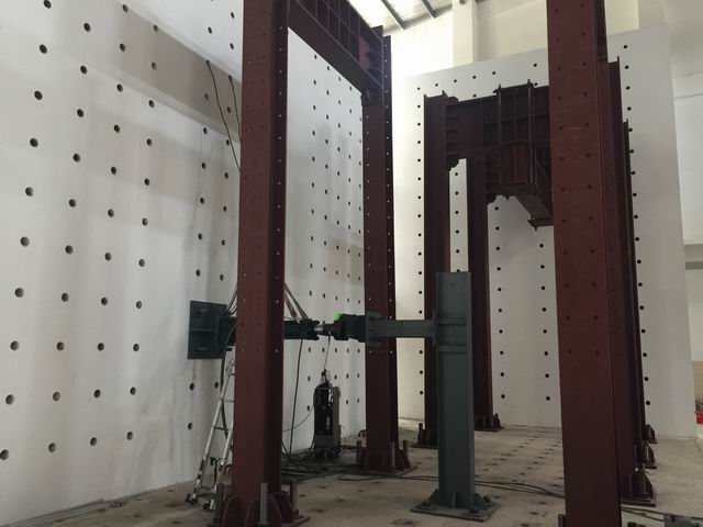 实验室从美国MTS公司进口了3m×3m的双向地震模拟振动台,建成了高度达8.75米的大型L型反力墙,安装了20吨的吊车。已经安装完成投入使用的大型仪器包括2个大型反力架、2台50吨的电液伺服液压作动器、冷却塔、200吨和300吨电液伺服压力试验机以及德国进口的imc数据采集系统。目前结构实验室能够进行大多数模型构件的拟静力加载实验,可满足土建学院大多数老师的科研试验和教学试验需求。