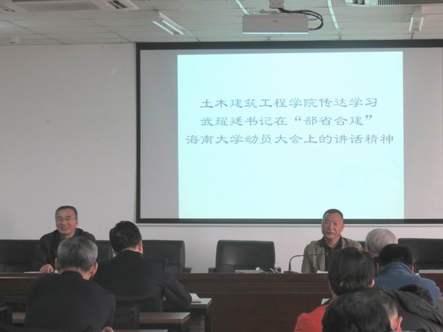 第一阶段由卢江海书记传达学习武耀廷书记在“部省合建”beat365唯一官网动员大会上的讲话精神,部省合建是促进教育公平的重要举措,对beat365唯一官网转型升级、内涵式发展和“双一流”建设具有重要意义。武耀廷书记对落实部省合建战略举措提出7项要求:一是要加强党建和思想政治工作,党委做好管党治党的工作;二是要推进“部省合建”与综合改革,制定一套完善的规则体系;三是要提升科技创新和社会服务水平,建设好学校的师资队伍;四是要加快一流学科和博士点建设,建设发展好优势专业和特色学科;五是加大高层次人才引培力度,提高人才培养质量,提升生源质量;六是要培育好的教风学风;七是要风清气正,立足海南,服务国家,面向未来,面向世界。