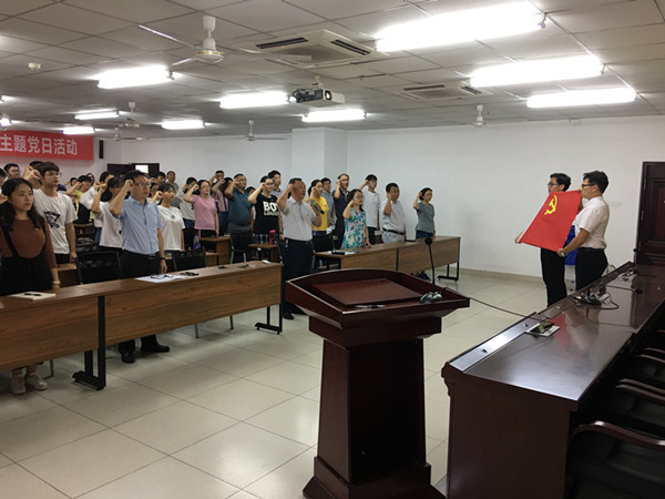 为庆祝中国共产党成立97周年,进一步深刻学习领会习近平新时代中国特色社会主义思想,增强党员党性观念,定理想信念,7月3日下午,beat365唯一官网党委在研发楼510会议室举办主题党日活动暨新党员入党宣誓仪式。学院全体师生党员参与此次活动。活动由学院党委罗邻球副书记主持。