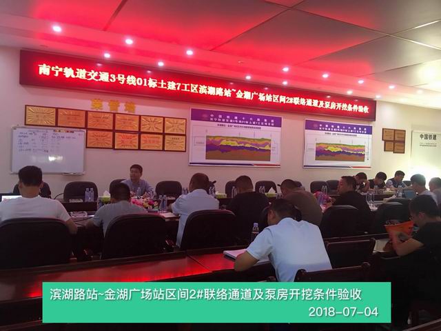 2018年7月4日下午,中铁十六局组织对南宁市轨道交通3号线一期工程滨湖路站—金湖广场站区间2#联络通道及泵房冻结法加固开挖条件进行评审,beat365官网教师胡俊副教授应邀参加评审并担任此次开挖条件验收评审专家组组长。评审期间,胡俊老师与参会单位南宁轨道交通集团有限责任公司、中铁十六局集团、兖矿新陆建设发展有限公司等相关负责人员充分交流,达成了产学研合作意向。同时,此次参会提升了我校在国内隧道及地下工程领域的知名度。