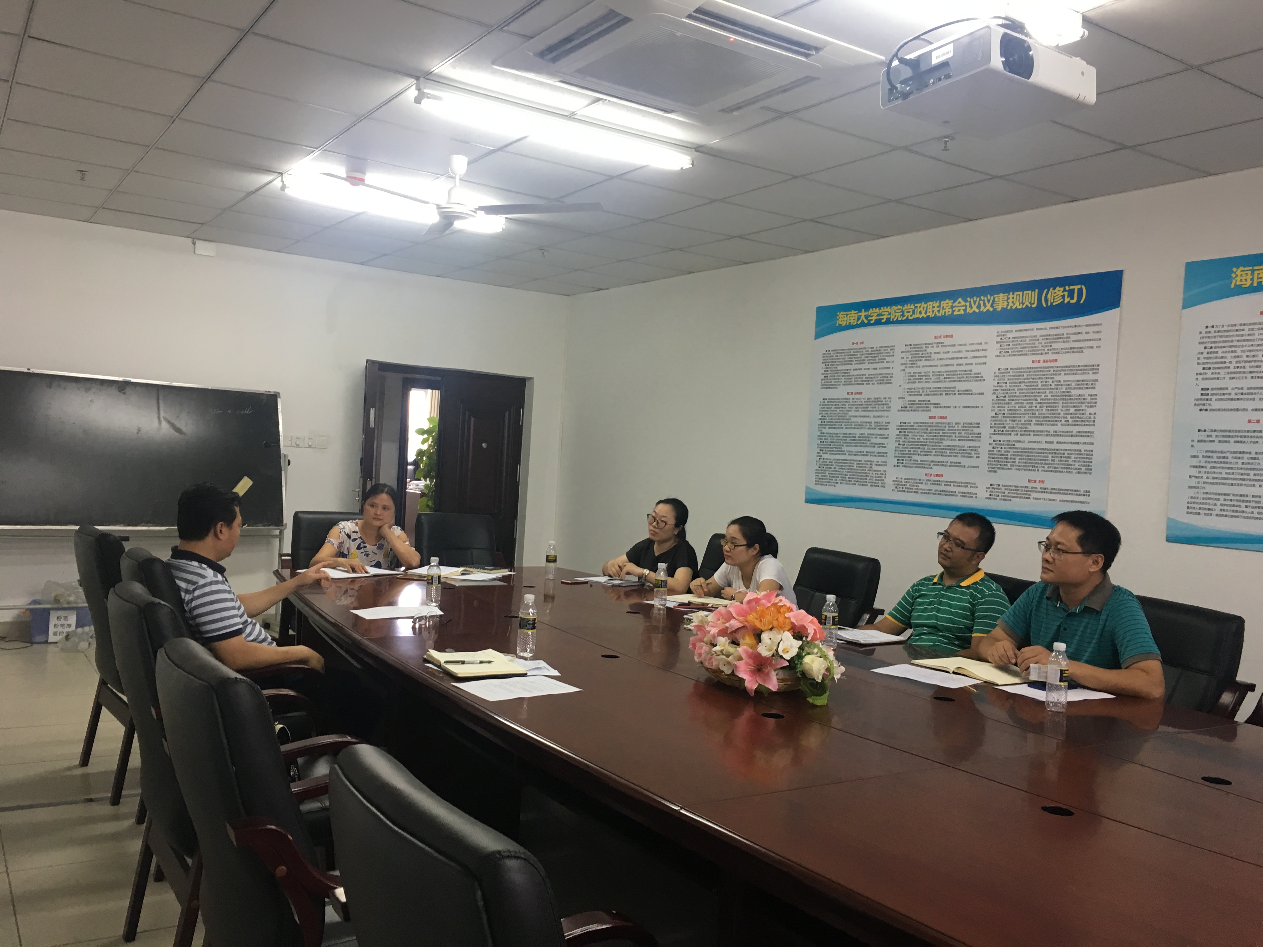 学院党委罗邻球副书记详细介绍了暑假留校学生基本情况以及留校学生安全管理工作的落实情况。学工办主任李江俊汇报了留校学生申请审批的流程,以及学院通过留校学生专题会、全体留校学生安全教育大会、班主任会议、学生联络人会议,走访学生宿舍,印制暑期留校安全提示卡,辅导员值班等一系列措施保障留校学生安全。