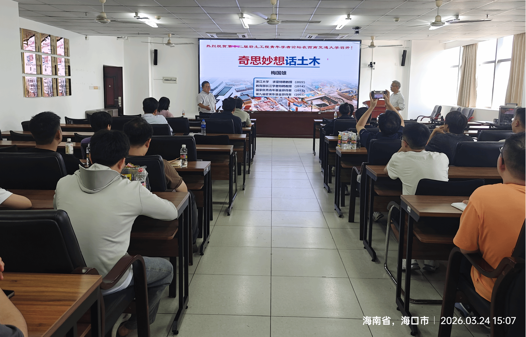 2026年3月24日,浙江大学梅国雄教授应beat365唯一官网周智教授邀请,在研发楼510会议室为师生们带来了一场题为《奇思妙想话土木》的学术报告。