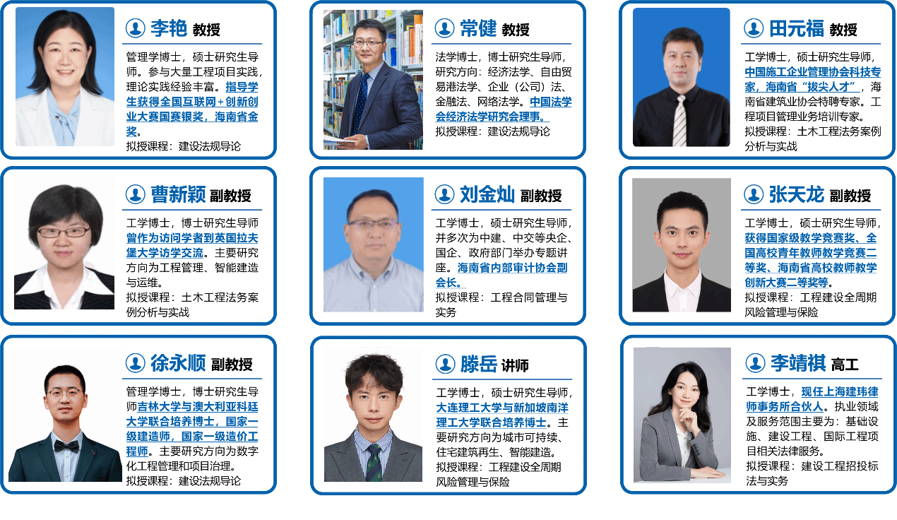 海南正处于自贸港建设的关键时期,大量更新改造、基础设施、片区开发和园区建设项目集中实施,对工程法律风险管理专业人才需求旺盛。土木工程法务微专业正是在这一背景下提出,旨在回应建设工程领域合同纠纷频发、项目实施过程中法律风险突出的现实问题。
