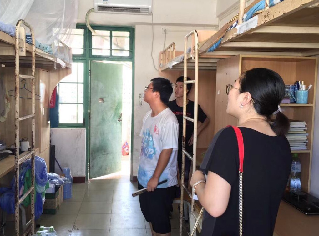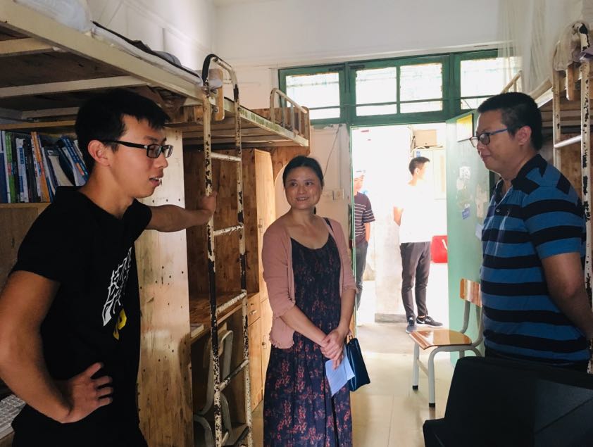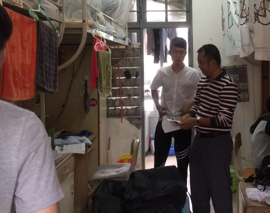 自2018年9月起,beat365唯一官网党委多次带领全体辅导员对学院学生宿舍区进行走访督察。对于卫生不合格宿舍,要求学生立即整改,同时教育引导学生主动向走访宿舍的老师问好。