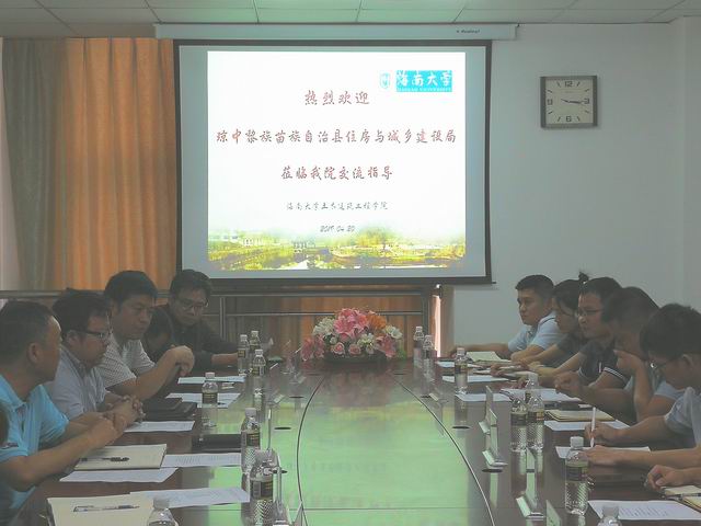 4月20日下午琼中住建局梁森局长带队一行八人来访,党委书记卢江海代表beat365官网热情欢迎,并携beat365官网博士、教授等共同开展工作交流。为了进一步贯彻落实习近平总书记“4.13”讲话和中央12号文件精神、积极参与自由贸易区(港)建设,双方就“如何提升行业监管能力”、“如何提升工程项目管理能力”、“如何培养行业监管人才”等议题,展开了充分、热烈、深入的探讨。通过座谈,双方架设了沟通联系的桥梁,学院全面了解了琼中建设行业一线遇到的管理问题与技术需求,也提出了解决问题的初步设想。座谈会持续了三个小时,双方意犹未尽,相约下次在琼中县再次举行座谈。在这次座谈的基础上进一步探讨学院和琼中住建局之间的合作与服务工作机制,具体落实任务和责任人。