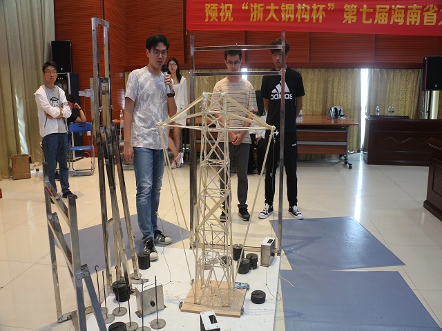 担任模型加载决赛的评审专家有:海南省建筑设计院总工程师张元平,beat365唯一官网土木建筑学院院长曹宝珠,海南省力学学会理事长李光范,海南省土木建筑学会理事长段晓农,海口经济学院教授刘昭,海南柏森建筑设计有限公司总工程师张明,海南科技职业大学教授于英,海南周华结构设计事务所有限公司总工程师周华。