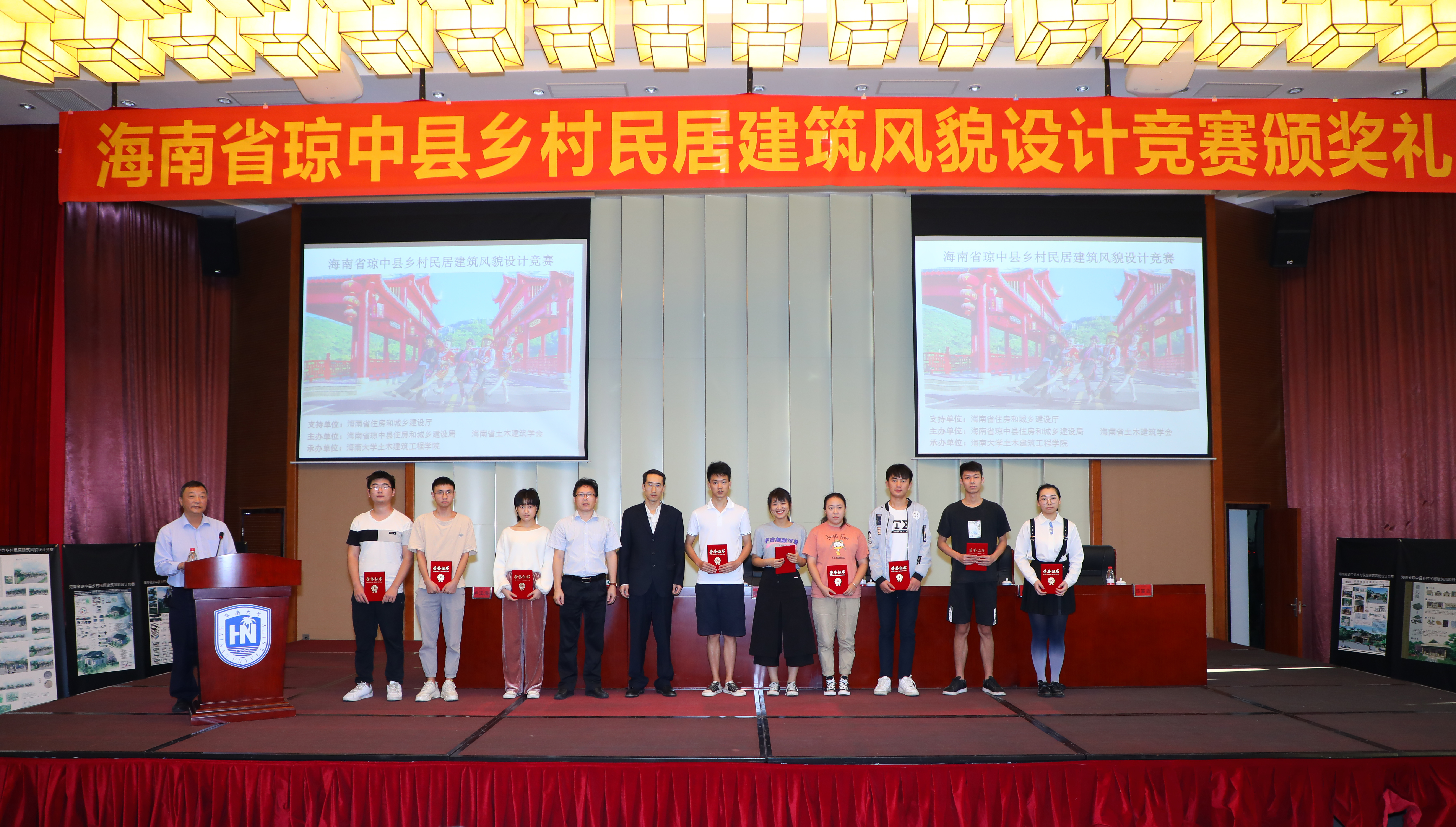 11月10日上午,《海南省琼中县乡村民居建筑风貌设计竞赛》颁奖大会在beat365唯一官网社科楼报告厅隆重举行。海南省住房和城乡建设厅欧玉山调研员,琼中黎族苗族自治县住房和城乡建设局郑杰文副局长,海南省土木建筑学会段晓农理事长,beat365唯一官网基建处穆大伟副处长,beat365唯一官网卢江海书记、邱宙廷副院长、陈云副院长,评审组专家,相关学院教师和学生约320余人参加颁奖大会。