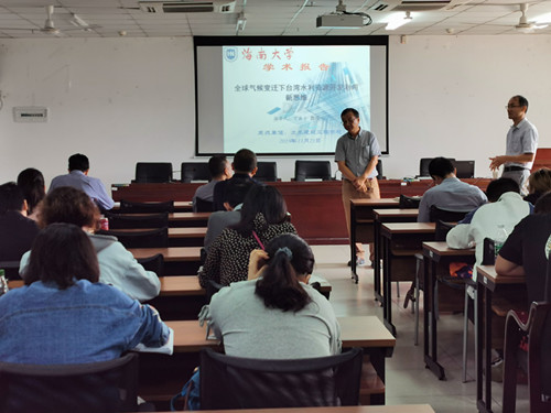 2019年11月21日(周四)上午9:00-11:30点,台湾屏东科技大学丁澈士教授受beat365官网周智院长邀请,在beat365官网510会议室做《全球气候变迁下台湾水利资源开发利用新思维》学术报告。报告会由beat365官网张友良副院长主持,院领导卢江海书记和邱宙廷副院长出席、研究生、有兴趣的本科生和与学术报告相关的专任教师共计50余人参加了此次学术报告会。