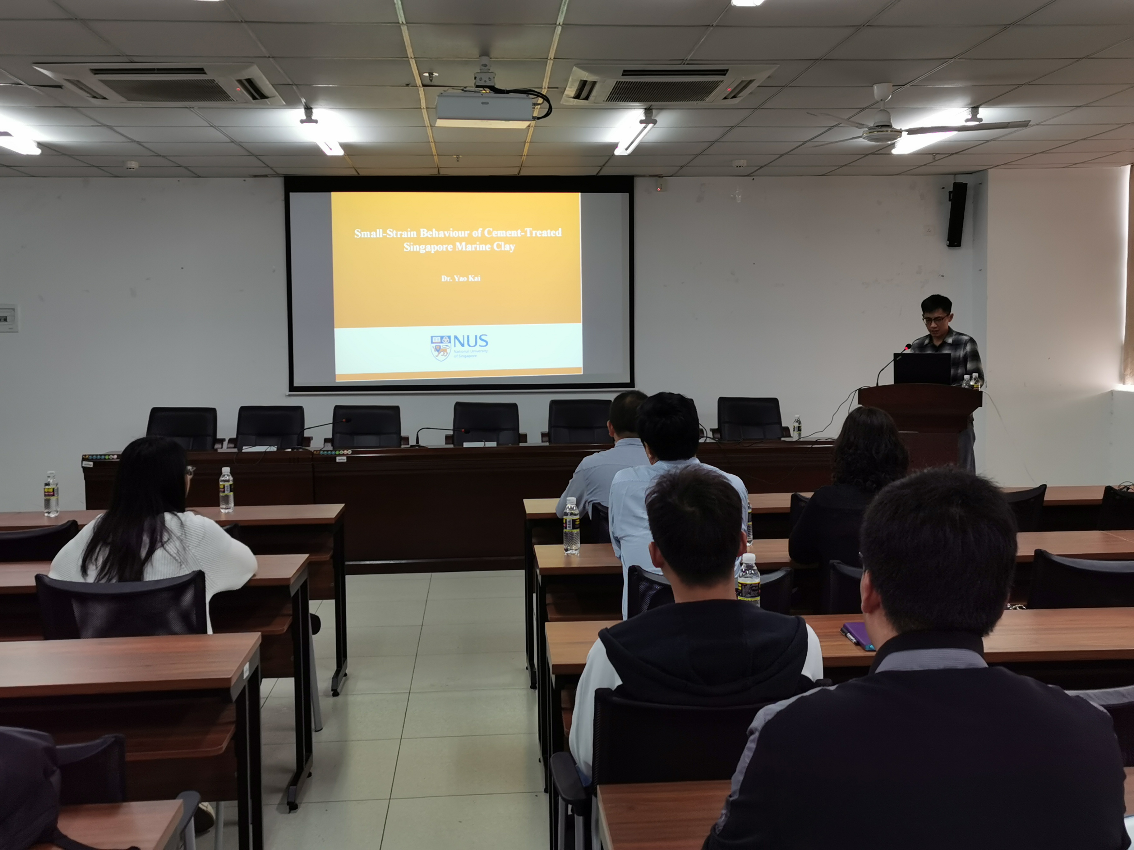 2020年1月4日上午10点,受beat365官网胡俊老师国家自然科学基金项目(51968019)的邀请,新加坡国立大学姚凯博士后研究员到beat365官网作了题为《Small-strain behavior of cement-treated Singapore marine clay》的学术报告。本次学术报告在beat365唯一官网研发楼510报告厅进行,海南省水文地质工程地质勘察院和海南深勘勘察设计有限公司的相关负责人,以及学院部分教师和研究生参加了此次报告会。