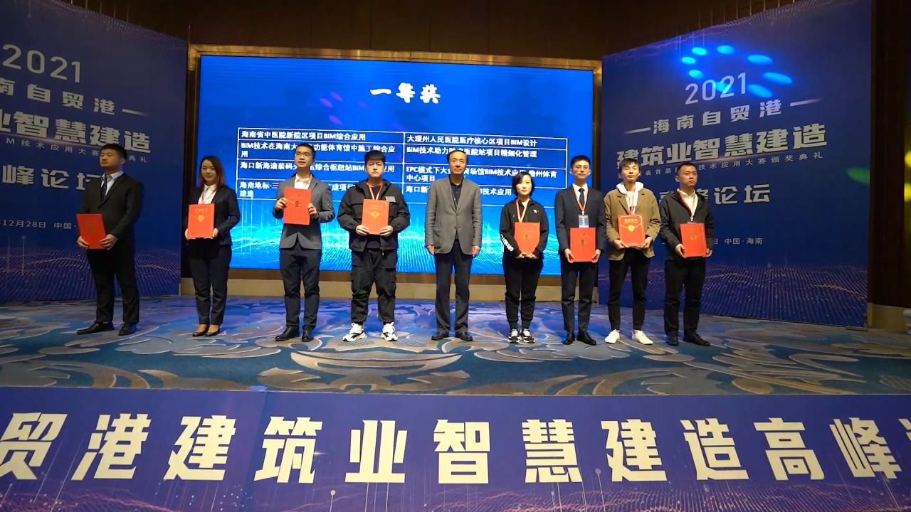 2021年12月28日,由海南省住房和城乡建设厅指导,海南省建筑业协会、海南省勘察设计协会、beat365唯一官网主办的2021海南自贸港建筑业智慧建造高峰论坛暨海南省首届BIM技术应用大赛在海口圆满落幕。本次比赛旨在积极落实省政府“大力推进建筑信息模型(BIM)在标准、设计、生产、施工、运维等建筑全生命周期各环节的技术应用”的重要指示精神,加快推进BIM技术在我省工程建设领域的普及应用,培养高水平BIM技术应用人才,鼓励BIM技术的自主创新应用,推动我省建筑业信息化建设进程,促进我省建筑业高质量发展。