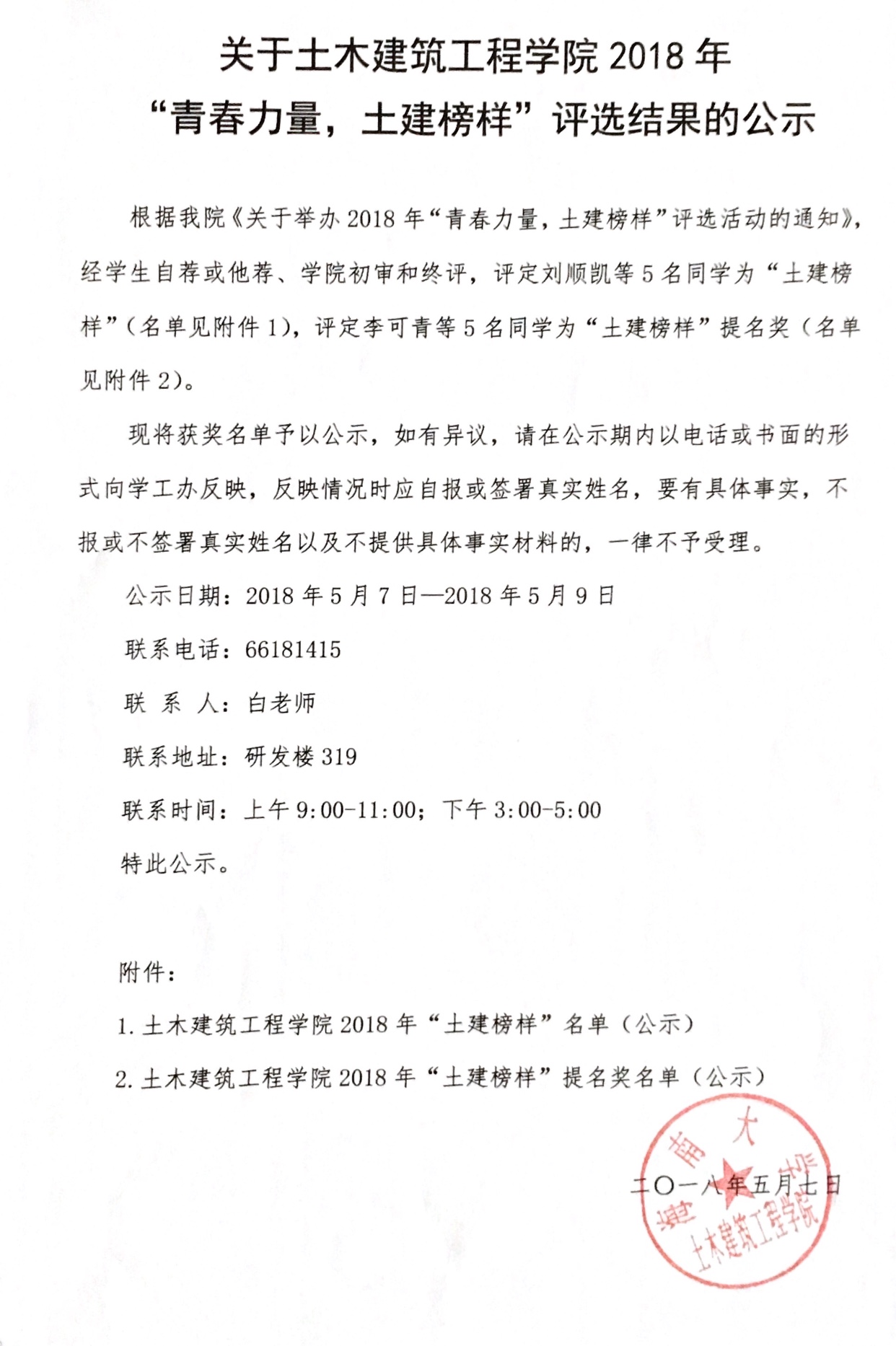 关于beat365唯一官网2018年“青春力量,土建榜样”评选结果的公示