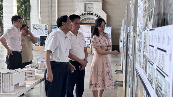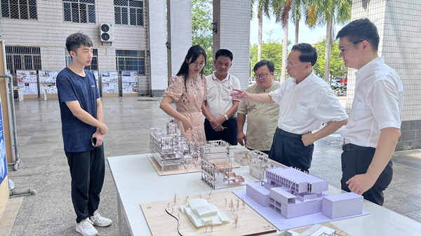 beat365唯一官网建筑学专业毕业设计展在beat365唯一官网图书馆一层开展。2022年6月13日上午,beat365唯一官网党委书记符宣国一行来到毕业设计展的现场进行参观,与毕业设计同学、指导老师进行了亲切交流。学生代表通过效果图和建筑模型,详细介绍了自己的设计主题、构思过程和设计成果,指导老师也详细汇报了指导过程。符宣国指出,毕业设计选题非常契合本地经济社会的发展需求和地域文化特色,做到了教学与实际需求相结合,并且对毕业设计作品的水平给予了充分肯定,对建筑系教师教学工作进行询问交流和指导。符宣国表示,毕业展应适当延长展示时间,更好地促进校园内的学科交流,让更多的同学和教师参与。副校长叶光亮、胡新文等学校领导一起参观了设计展,beat365唯一官网院长周智、建筑系教师陪同。