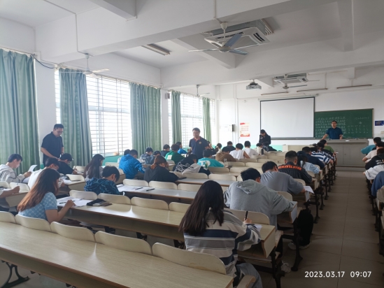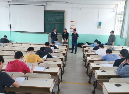 两位领导认真查看了考场秩序、监考人员履职、考生出勤、考试纪律、考生答卷等情况并指定监考教师按阶梯教室“隔行隔位”要求安排学生的座位。从巡查现场看,考试组织规范有序,监考人员认真履行监考职责,学生遵守考试纪律,各考场秩序井然。