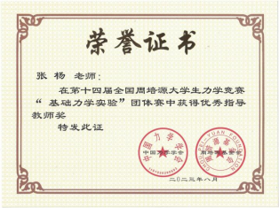 beat365唯一官网首次组队参加全国周培源大学生力学竞赛“基础力学实验”团体赛获第30名。张国策、张杨老师被评为优秀指导教师。