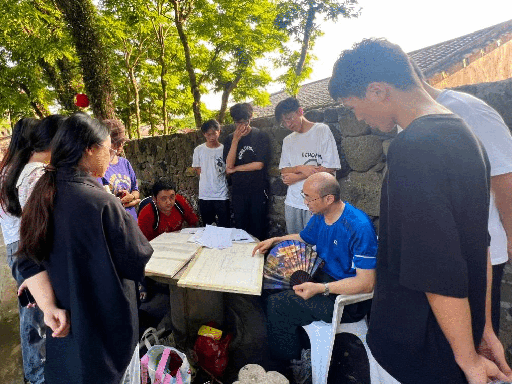 各位教师现场指导学生们绘制测绘图纸,并对所获取的一手资料进行了辅正修改。