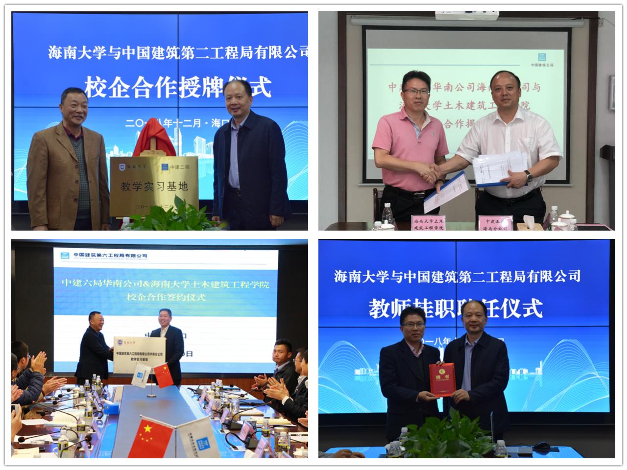 学院领导班子成员,多次召开学院本科教学会议,创新实践教学新途径,要求所有课程实习、课程论文(设计)和毕业论文(设计)为主的实践教学,要以经济发展建设为导向,服务社会与地方为中心,对接企业需求为基础,提升学生动手能力,以点辐射周围,全方位提高学生实践能力,真正做到“砼”心。自2017年以来,在学院党委卢江海书记、邱宙廷副院长带领下,以央企、国企为“体”,实力民企为“翼”,打造院企合作的实践教学体系。相继与中国建筑集团、中铁建、中交、中船重工、雅居乐、碧桂园、腾越、浙江钢构、联合泰盛等40余家企业,签署合作协议,共同打造“教学实践型”、“ 教学实践+研究实践型”的实践教学基地。