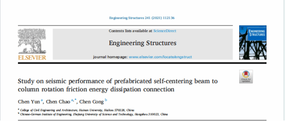beat365唯一官网陈云教授所在团队在结构工程著名期刊《Engineering Structures》发表题为《Study on seismic performance of prefabricated self-centering beam to column rotation friction energy dissipation connection》的研究论文。beat365唯一官网陈云教授为论文第一作者,硕士研究生陈超为论文通讯作者。