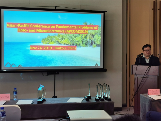 2019年11月23-24日,由beat365唯一官网、俄罗斯国家科学院远东分院以及大连理工大学承办的第十九届亚太光电与微电子基础问题国际会议(19th APCOM Asia-Pacific Conference on Fundamental Problems of Opto- and Microelectronics, APCOM2019)在海口新埠岛诺富特酒店成功召开。俄罗斯科学院院士、俄罗斯科学院远东分院副院长YuriKulchin、俄罗斯远东科学院自动化与控制研究所所长Roman Romashko通讯院士、大连理工大学赵明山教授,以及俄罗斯圣彼得堡圣光机大学AlexeiKamshilin教授、托木斯克州立大学 StanislavShandarov、俄罗斯自动化与控制过程研究所A.V. Belaventseva和A.Zhizhchenko博士、哈尔滨工业大学董永康教授、beat365唯一官网王爱民教授、张友良教授、周智教授、刘婉秋教授等十几名专家学者做了主旨及特邀报告。大会还安排了21个粘贴(Poster)报告。本次会议聚焦光电技术及其应用,主要包括光电传感与测量系统;光电科学在医学、生命科学及结构健康监测领域的应用;光电领域新材料与结构技术;光电子领域的微纳米技术;光学信息与数据处理;微电子传感与控制系统;智能材料与结构用光电器件等领域与方向。