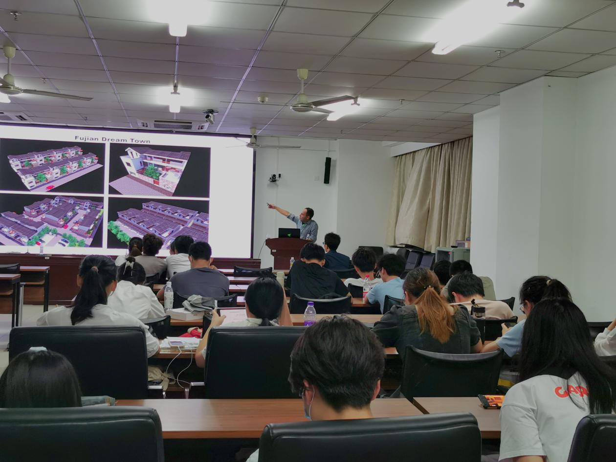 Dacian先生围绕他在中国的设计经验进行了讲演,Dacian先生的个人魅力深深地折服了在场的每位同学。Dacian先生凭着自己中国设计项目中积累的经验和丰富的阅历,给学生讲解及分析了许多建筑设计方面的实际操作案例,并同时向建筑学专业的同学们提出几点希望:第一,希望同学们扩大知识面,提升专业技能;第二,希望同学们注意把自己的所学专业和社会需求相结合起来,注重实际技能的培养。此次讲座内容丰富多彩,语言生动幽默且具有哲理,同学们均感到受益匪浅。