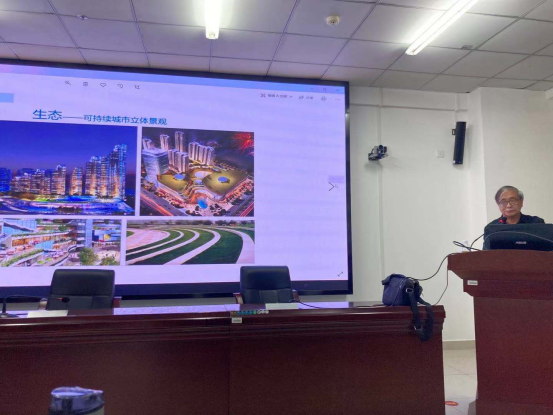 钟杰民先生做了题为《漫步设计人生路——ATKINS东莞湾区国际制造中心设计》的报告,分别从个人项目介绍、东莞国际中心项目设计讲解以及英国ATKINS建设公司介绍等方面分享了自己的建筑设计经验和方法,其中,钟杰民先生从分析、定位、设计、技术等专业方面,分享了东湾国际中心项目的设计思路和过程。