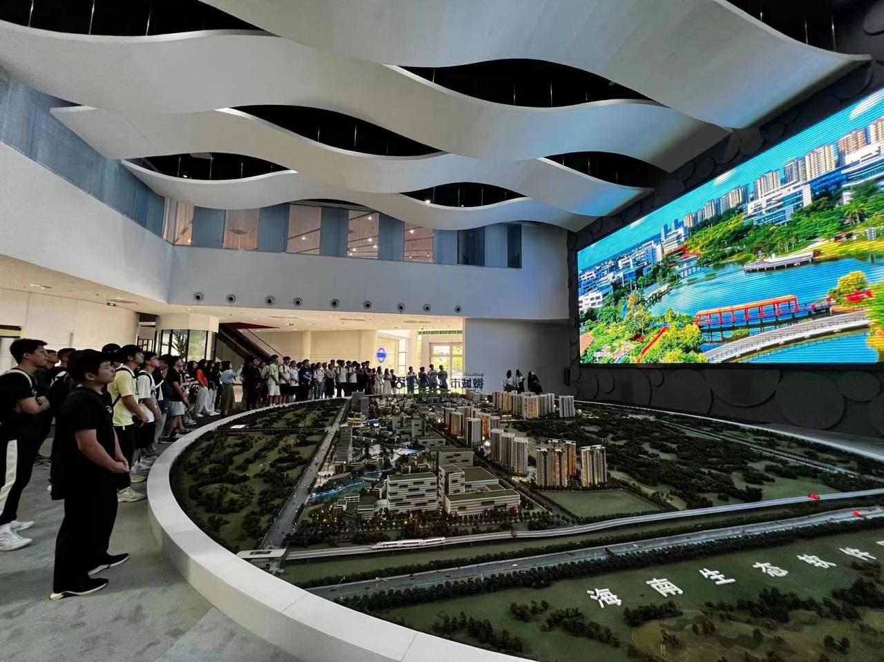 09:30-09:50,工作人员齐会会带领师生参观了软件园综合展示中心,并对园区整体规划进行了详细介绍。