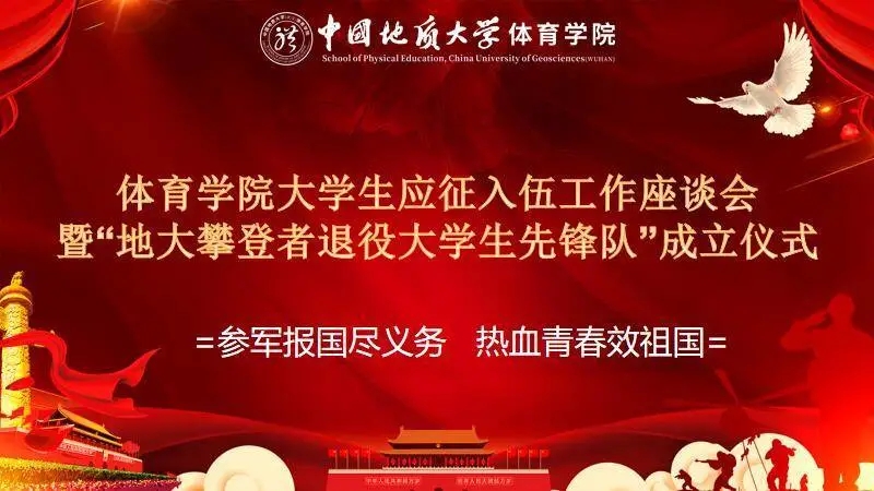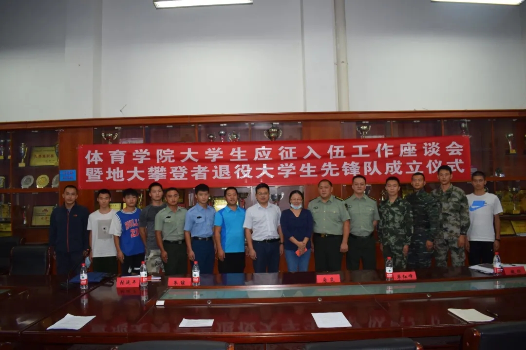 2020年9月10日15:00,beat365在体育馆二楼会议室召开了beat365在线唯一官网大学生参军应征工作座谈会暨地大攀登者退役大学生先锋队成立仪式。出席此次会议的领导有武装部副部长单红峰,学工部副部长朱继,武装部老师魏刚,beat365在线唯一官网党总支书记庞岚,beat365在线唯一官网党总支副书记张延平。参与本次会议的人员有beat365在线唯一官网在校的退役大学生和2020年应征入伍学生,以及beat365在线唯一官网部分同学。会议由131181班的陈岳峰同学主持。