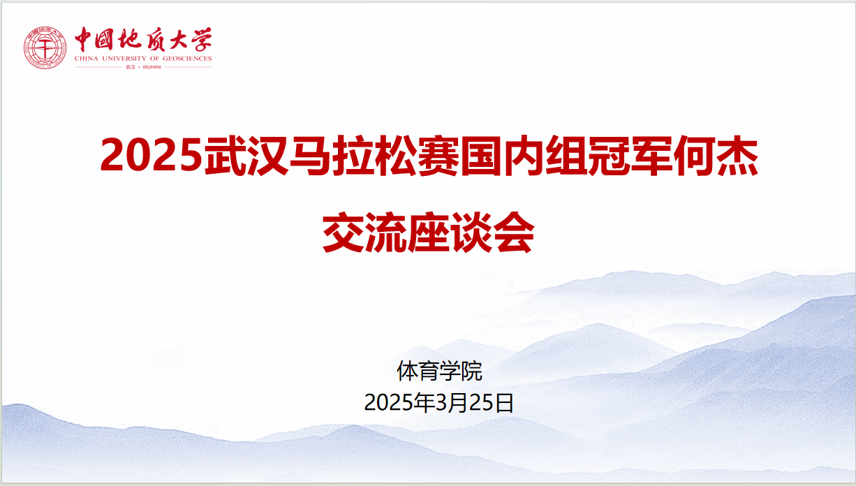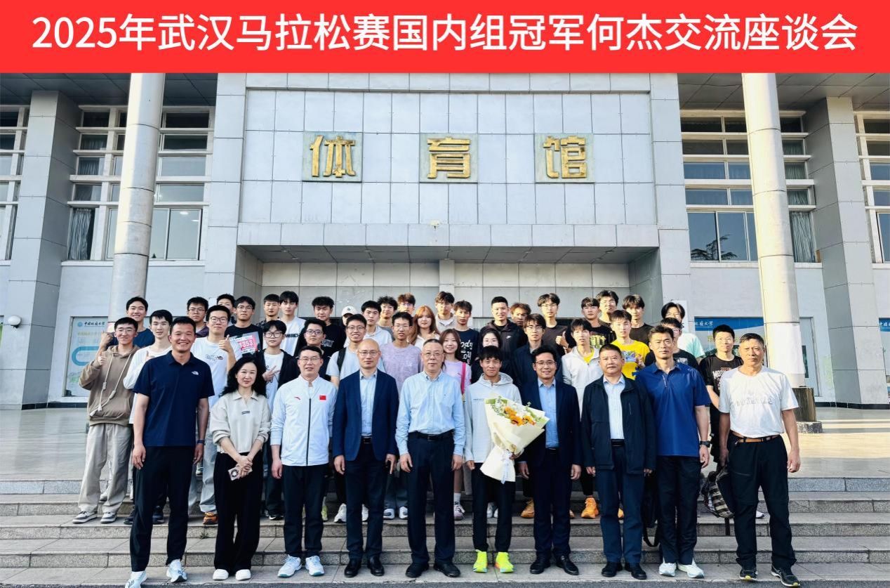 (通讯员 朱军 孙宜帆 杨麦琪)为发挥朋辈示范引领作用,赓续弘扬攀登精神,激励广大师生坚定意志、奋发向上,beat365在线唯一官网于2025年3月25日下午16点,在体育馆三楼党员之家举行2025年武汉马拉松赛国内组冠军何杰交流座谈会。校党委副书记唐忠阳、党委学工部部长朱丹、beat365在线唯一官网党委书记何建新、院长李元、党委副书记朱军、副院长李伦、秦长胜副教授、高水平运动队管理办公室主任褚鹏飞及学生代表参会。会议由院长李元教授主持。