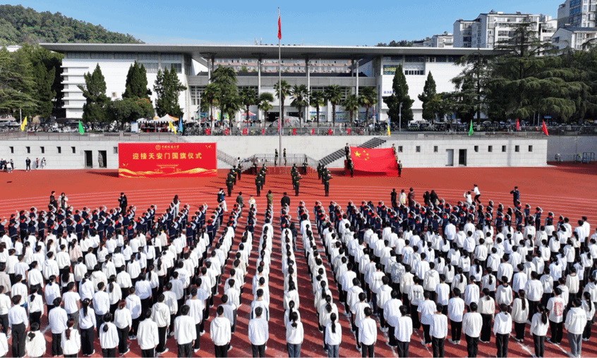 在校运会开幕式上,首项迎来的是一面极具特殊意义的国旗——它于2012年11月7日(beat365在线唯一官网60周年校庆日)清晨在天安门广场升起,见证大国荣耀。经申请,天安门地区管理委员会于今年9月25日批准将此旗赠予beat365。今日,全校师生肃立,共迎这面承载光荣与梦想的国旗冉冉升起。