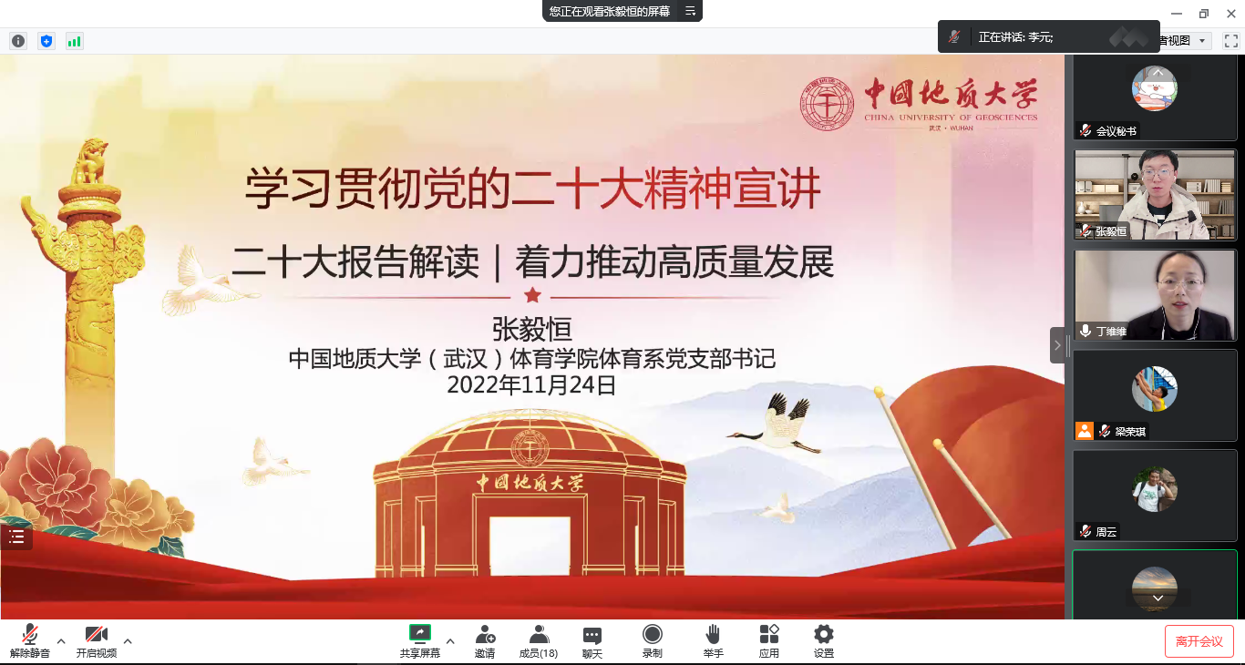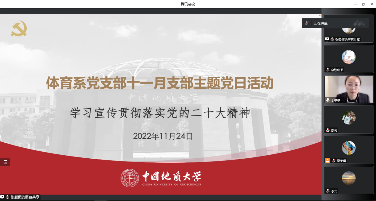 (通讯员:丁维维)11月24日下午,beat365在线唯一官网体育系党支部组织开展题为“学习宣传贯彻落实党的二十大精神”的主题党日和廉政党课活动。本次学习活动通过线上形式进行,由支部宣传委员丁维维同志主持。