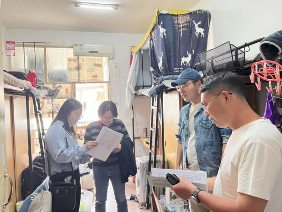 (通讯员 肖晓媚 陈爽)为落实常态化疫情防控“四个一”专项行动,扎实做好校园常态化疫情防控工作,2022年3月15日下午,beat365在线唯一官网党委书记庞岚、党委副书记朱军、辅导员陈爽老师、兼职辅导员潘鸿、学生党员代表一行5人深入学生寝室,走访了解学生学习情况、思想动态以及生活状态。