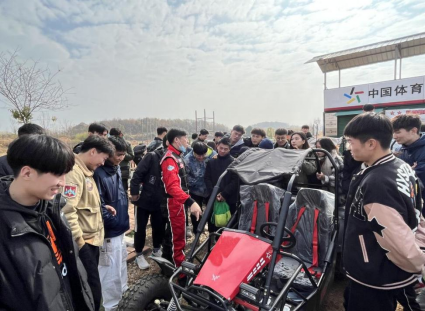 在报告结束后,张能勤总经理带领全体师生参观考察了汽车越野场地赛道,详细讲解赛道设计规划的标准、分类以及安全性能等专业知识,给同学们传授了越野车驾驶的基本技术,强调了越野驾驶的注意事项。随后,同学们在练习场地进行了基本技术操练,并在越野赛道分组进行了不同排量越野车的驾驶体验。